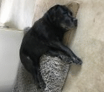 Now 13 and greying rapidly!! He is stone deaf but operates pretty well with hand signals. Sleeps a lot, still barks a lot, mostly at nothing but his eyesight is pretty poor – cataracts, and now is a permanent indoor dog with his own doggy door (but ohhh the shedding – I vacuum every morning!!). Thanks ARRG Lismore for my best friend.